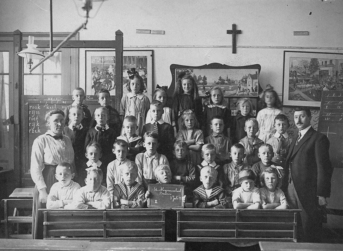 Een klassefoto gemaakt op 3-7-1922. Aan de linkerzijde, op de tweede rij:Bertus en Joop Kietselaer