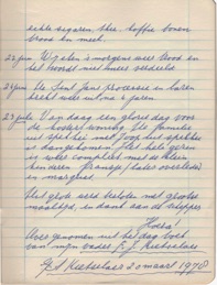 Erg waardevol in deze, is een dagboek geschreven door F.J.Kietselaer (Frans, de vader van Ad, Leo, Bertus, Joop en Alijda), waarin de laatste maanden van de oorlogsjaren van de tweede wereldoorlog worden beschreven: van 24 september 1944 tot en met 23 juli 1945. Klik op de afbeelding van het schriftje om het dagboek te lezen. Klik vervolgens op het onderbroken vierkantje rechts onderin om het dagboek beeldvullend te bekijken. Met de pijltjes aan de rechter- en linkerkant kun je bladeren door het dagboek. Everard heeft dit dagboek in Word gezet en voorzien van een toelichting en foto’s en afbeeldingen.